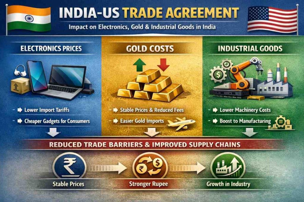 The evolving India-US trade agreement is increasingly shaping the price landscape of everyday and high-value goods in the Indian market. As both countries work toward deeper economic cooperation, the impact is being felt not just in export numbers or diplomatic statements, but directly in the prices consumers pay for electronics, precious metals like gold, and critical industrial inputs. The agreement reflects a strategic alignment between two major economies and carries significant implications for inflation, manufacturing competitiveness, and household spending in India.